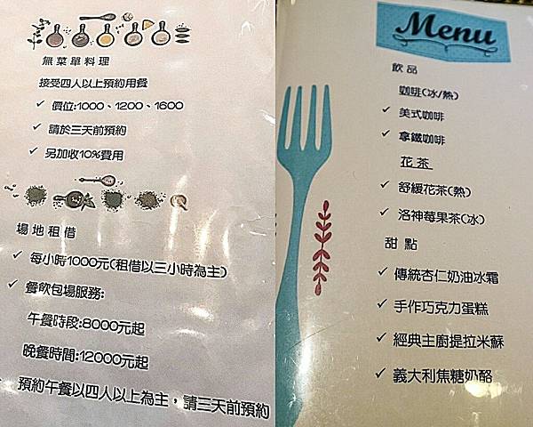 義大利麵 , 燉飯 , 麵疙瘩 , 鮭魚 , 羊排 , 鴨胸 , 春雞 , 牛排 ... 等排餐類別